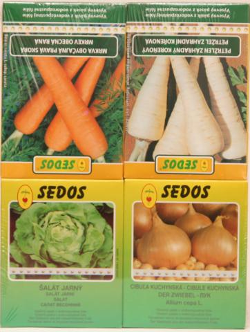 Sada osív výsevných pásikov zo základných druhov koreňovej a listovej zeleniny.